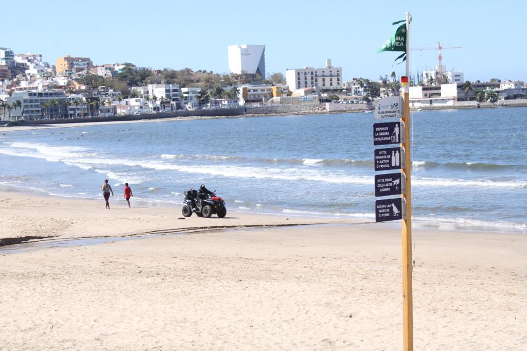 Espinoza Bastidas reiteró el llamado a mazatlecos y turistas a respetar los banderines y señalamientos que indican las condiciones de cada zona de playa, ya que hay algunas áreas que resultan peligrosas para los bañistas.