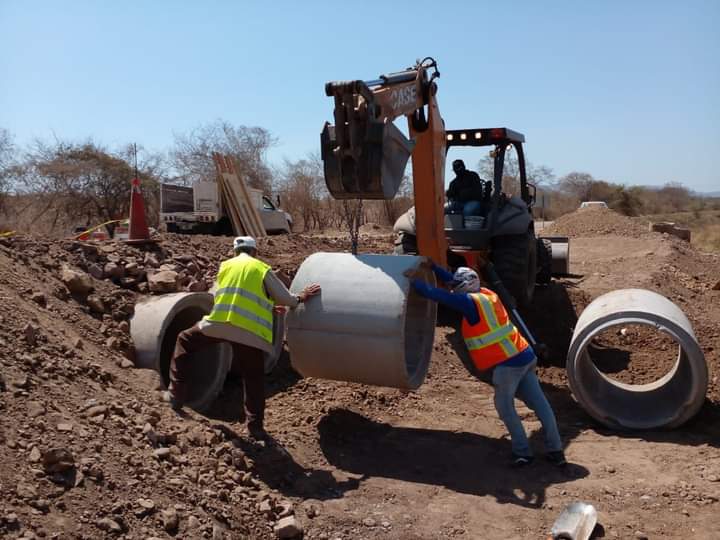 Colocan tubos que ayudarán a desfogar el flujo de agua en el cruce del camino vecinal de la comunidad de Los Naranjos