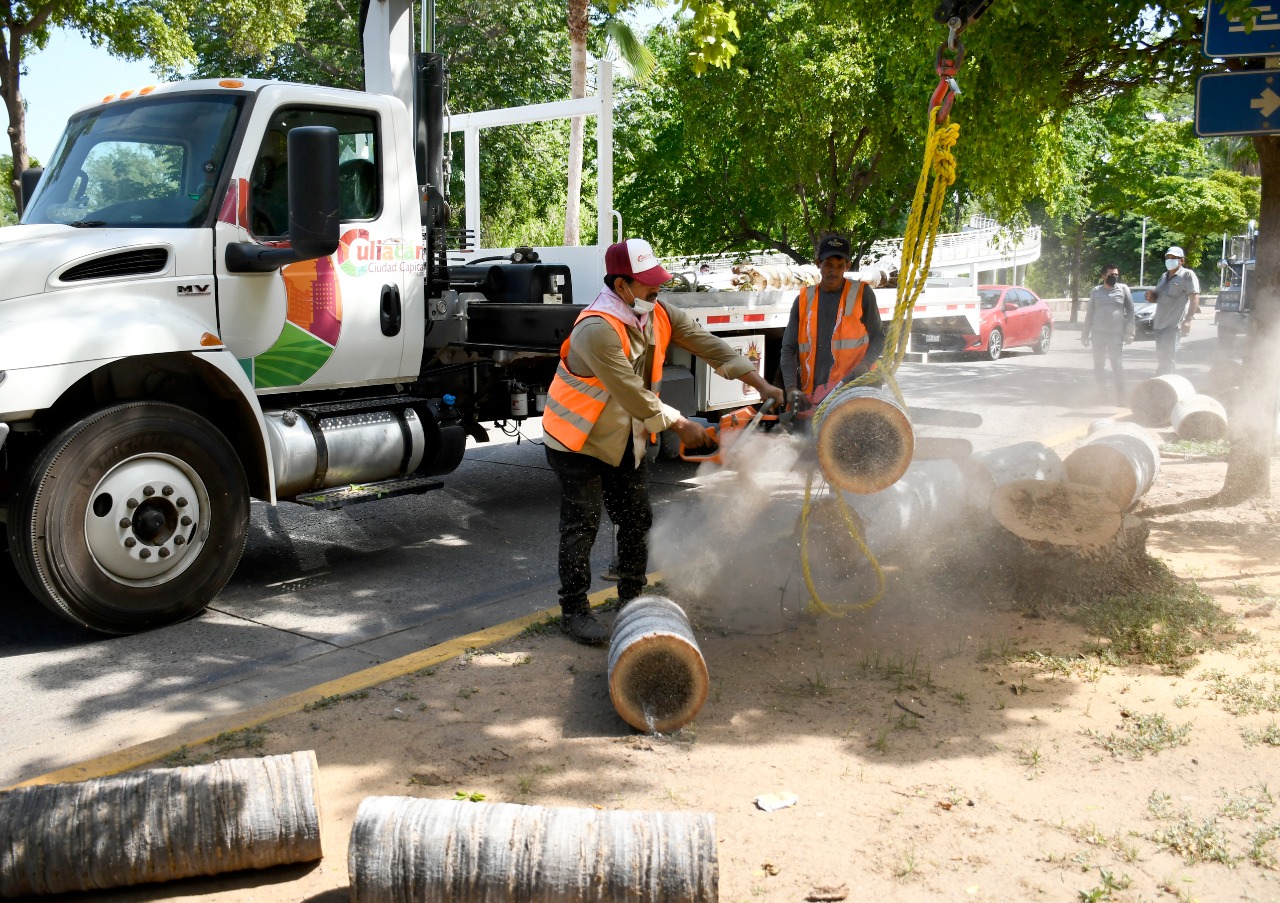 CULIACÁN, Sin.- A través del trabajo en conjunto de Parques y Jardines, Secretaría de Obras y Servicios Públicos se detectó un gran número de palmas de ornato afectadas por plaga y totalmente secas sobre el camellón Niños Héroes conocido como Malecón Viejo.