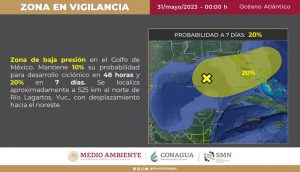 Mantiene 20% su probabilidad para desarrollo ciclónico en las próximas 48 horas