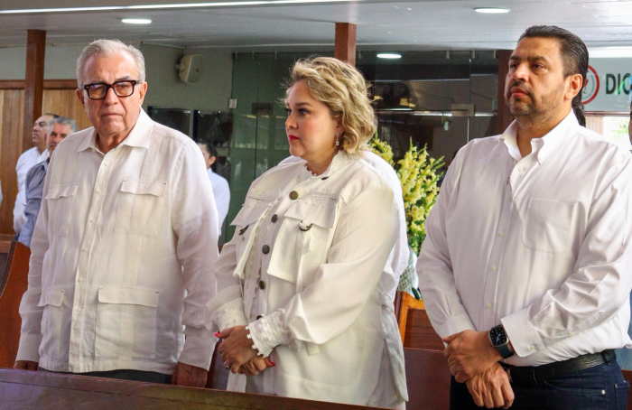 CULIACÁN, Sin.- El gobernador Rubén Rocha Moya en compañía de Eneyda Rocha Ruiz presidenta del voluntariado del DIF Sinaloa, asistió la mañana de este martes al Templo de La Lomita, con la finalidad de acompañar a los productores en su tradicional misa para celebrar el Día del Agricultor, en el festejo a San Juan Bautista.
