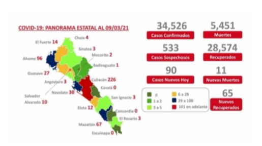 CULIACÁN, Sin.- Sinaloa acumuló este martes 5,451 muertos por COVID-19 con 11 nuevos fallecimientos reportados en las últimas 24 horas.