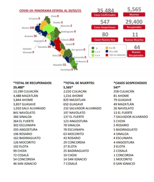 CULIACÁN, Sin.- Sinaloa acumuló 5,565 fallecidos por coronavirus con 11 nuevos fallecimientos reportados en las últimas 24 horas.