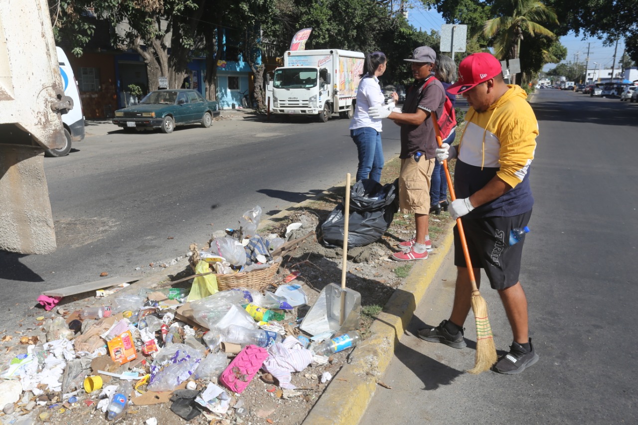 Personal de esta dependencia y del departamento de Aseo Urbano acudieron al lugar para retirar la basura acumulada en el camellón de la avenida Gabriel Leyva y banquetas, además de colocar señalización para informar que no está permitido depositar desechos en estas áreas.