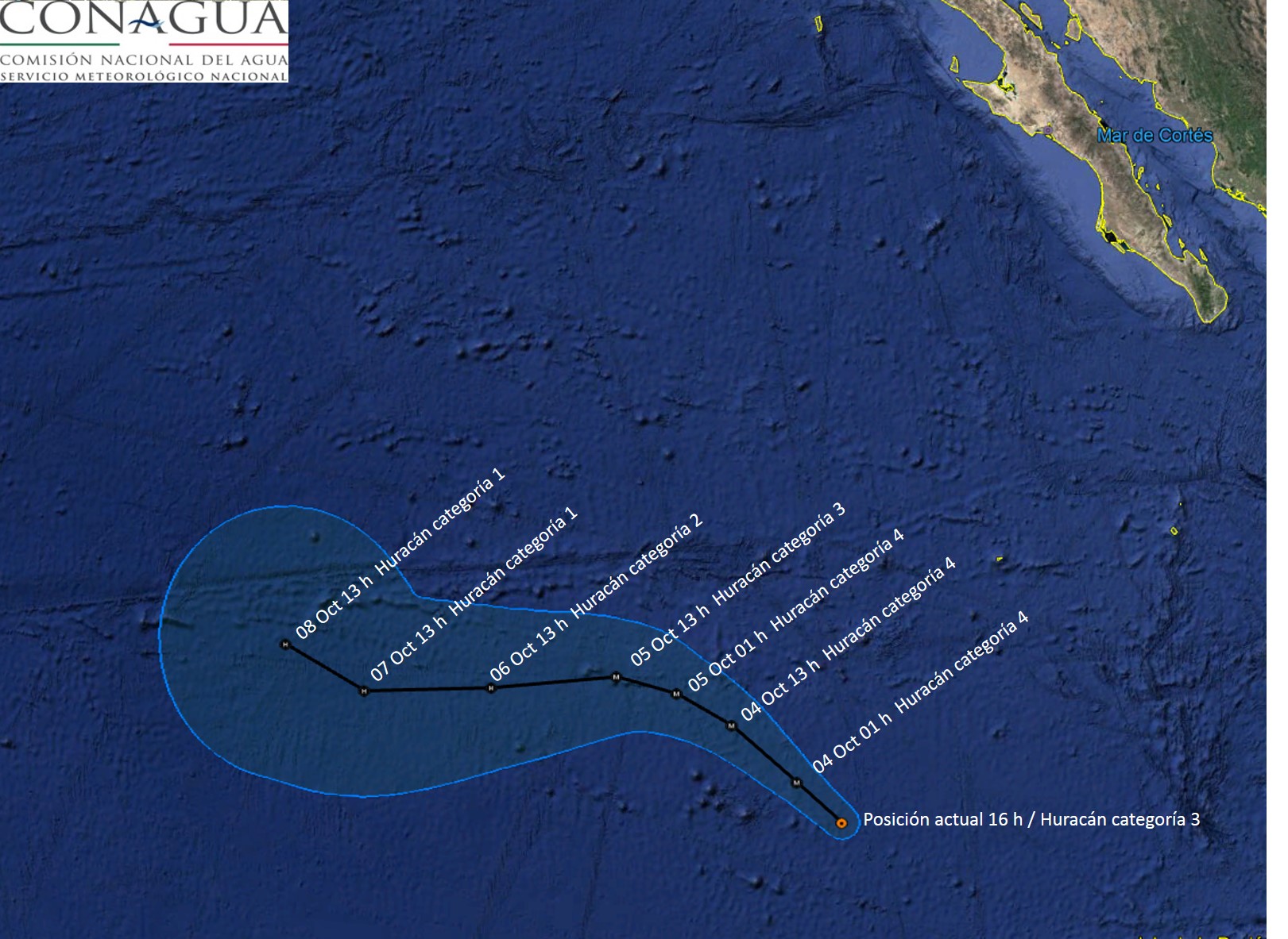 Se ubica a mil 360 kilómetros al suroeste de Cabo San Lucas, Baja California Sur con desplazamiento noroeste a 15 kilómetros por hora.