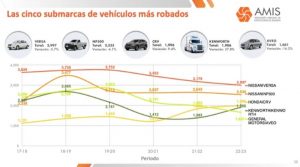 Sin embargo, hay un total de 5 vehículos que se encuentran entre los más robados durante el último año con corte a marzo de 2023.