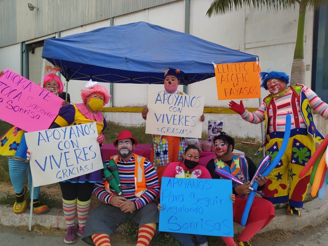 A pesar del calor arriba de los 30 grados centígrados los payasos hacen malabares y algunas otras travesuras que invitan a la población a sumarse a esta noble causa en medio de la pandemia.