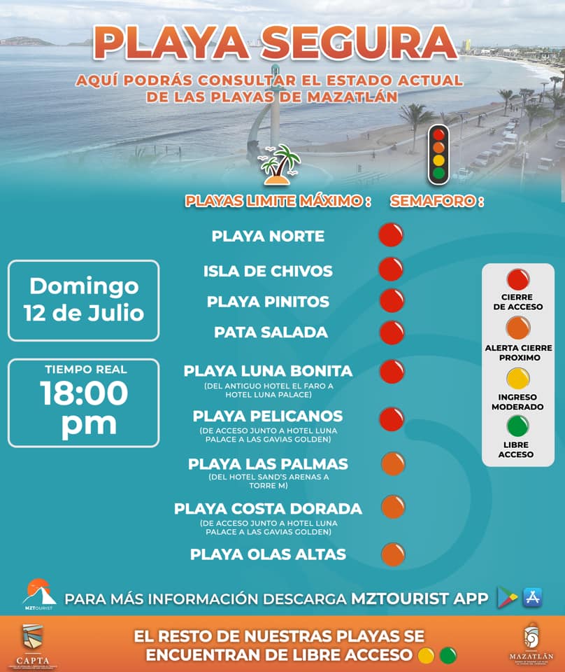 Con alerta de cierre próximo en Playa Las Palmas, Playa Costa Dorada y Olas Altas.