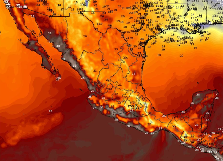 Las temperaturas continuaran de 14-16 grados por las noches madrugadas y máximas de 28-30 grados durante el día.