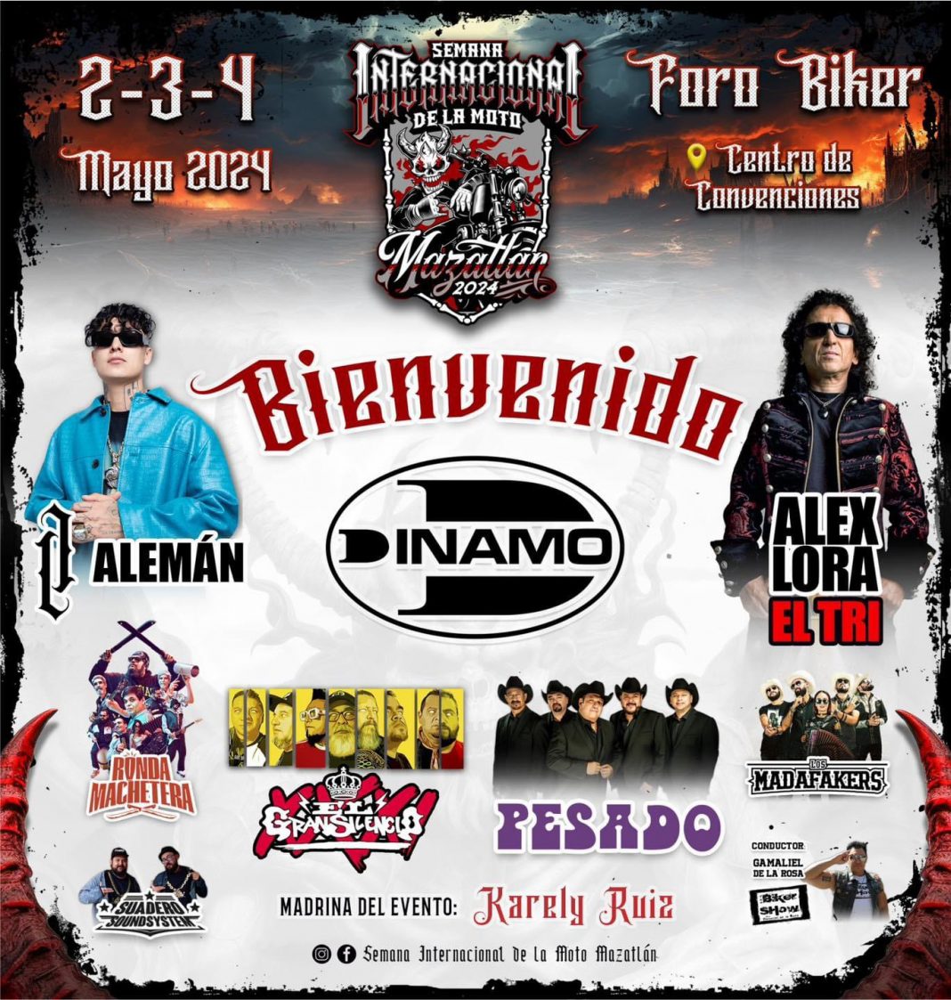 MAZATLÁN, Sin.- Alex Lora El Tri, Los Madafakers, Pesado y El Gran Silencio entre los invitados a la Semana Internacional de la Moto Mazatlán del 02 al 04 de mayo en el Foro Biker, centro de convenciones del puerto.