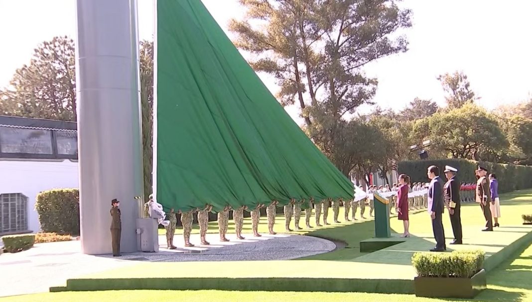 CIUDAD DE MÉXICO.- Durante la conmemoración del Aniversario de la Bandera y ante la cúpula militar en el campo Marte, la presidenta Claudia Sheinbaum, declaró su administración no se arrodilla ante gobiernos extranjeros.