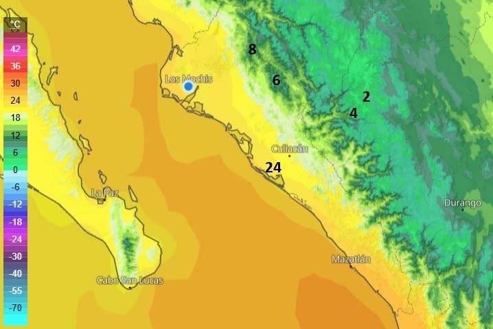 Prevé que Sinaloa tendrá su temperatura más baja en la zona de Surutato, Badiraguato, con 6 grados centígrados de sensación térmica.