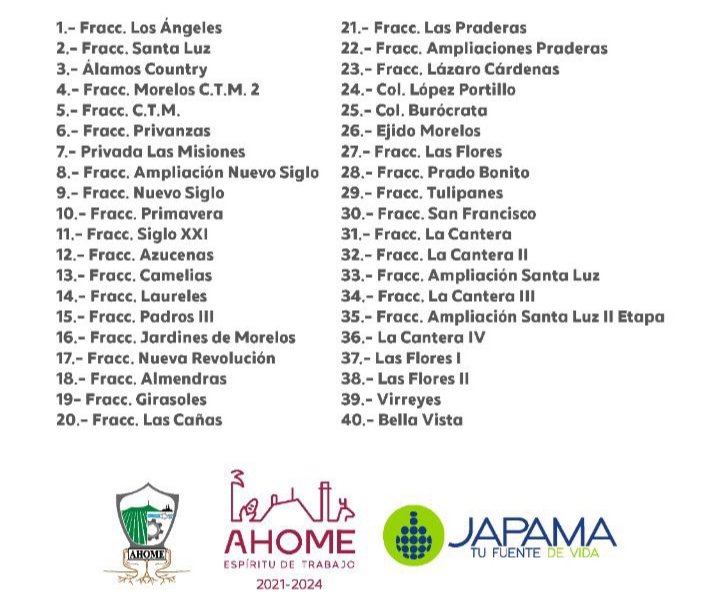 LOS MOCHIS, Sin.- El gobierno de Ahome anunció la suspensión del servicio de agua potable para este martes 21 de junio de 10:00 a 17:00 horas en 40 colonias y fraccionamientos de Los Mochis.