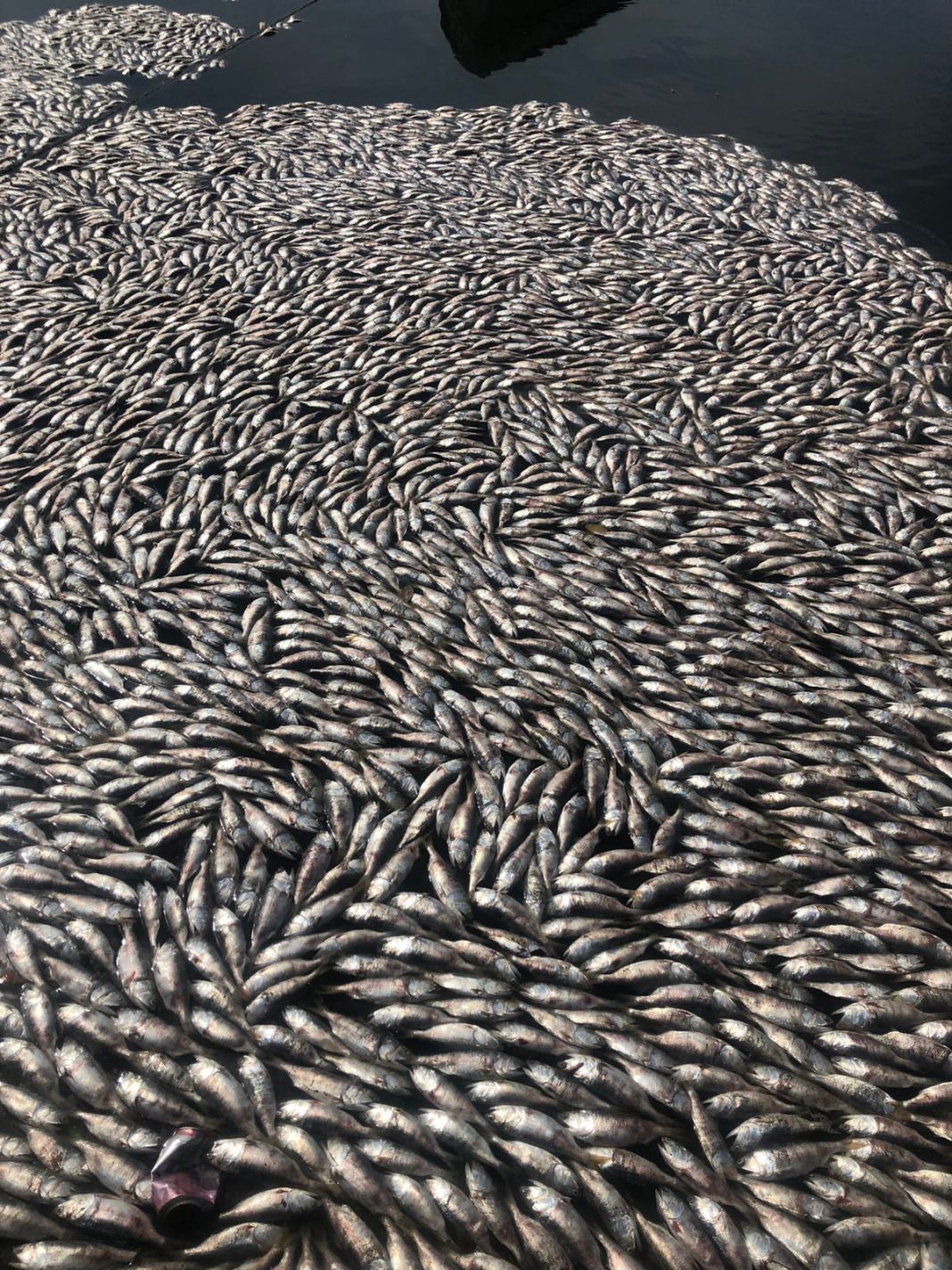 Los peces están hinchados, putrefactos y siguen arribando por centenares a la bahía en medio del calor y los malos olores