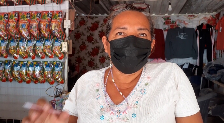 Ella tiene 13 años en la venta de dulce, ropa y accesorios en la plazuela Vicente Guerrero de Navolato al considerar la de 2020-2021 la peor fecha de los casi 25 años en que se instala esta tradición.