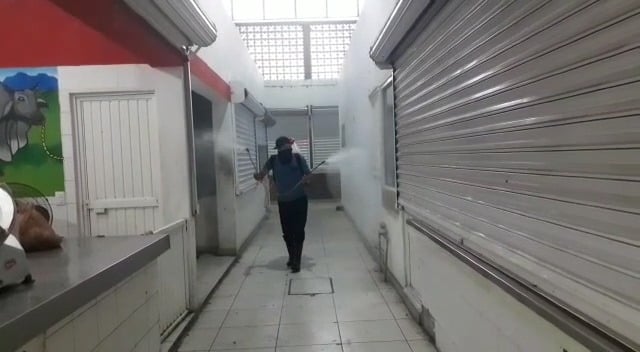 De esta forma se procedió con la sanitización de todos los locales a los que diariamente acuden cientos de personas de la zona a realizar compras y ofrecer sus productos, situación por la que se requiere mantener activa la desinfección.
