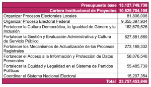 CIUDAD DE MÉXICO.- El Consejo General del Instituto Nacional Electoral (INE) aprobó por unanimidad el Anteproyecto de Presupuesto para el ejercicio fiscal del 2024, por un monto total de $23,757,453,846.00 (veintitrés mil setecientos cincuenta y siete millones cuatrocientos cincuenta y tres mil ochocientos cuarenta y seis pesos) de acuerdo a la siguiente distribución: