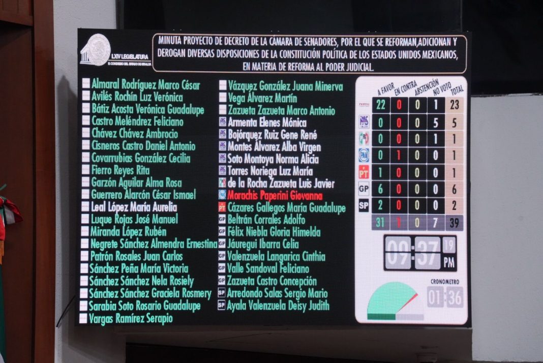 Con 31 votos a favor y sólo uno en contra, la minuta de Proyecto de Decreto de la Cámara de Senadores por el que se reforman, adicionan y derogan diversas disposiciones de la Constitución