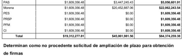 Son 50 millones 402 mil pesos para gobernador y la misma cifra para diputados locales y 18 alcaldías