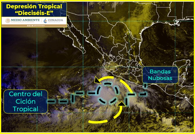 CIUDAD DE MÉXICO.- Se ha formado la depresión tropical “16-E” se localiza a 470 kilómetros al sur de Manzanillo, Colima y a 950 km al sur de Mazatlán.