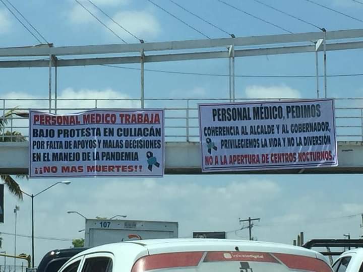 CULIACÁN, Sin.- Con protestas en la catedral de Culiacán y a las afueras del recinto legislativo del Congreso del estado, los médicos incrementaron sus protestas ante la falta de insumos por la pandemia contra el COVID-19.