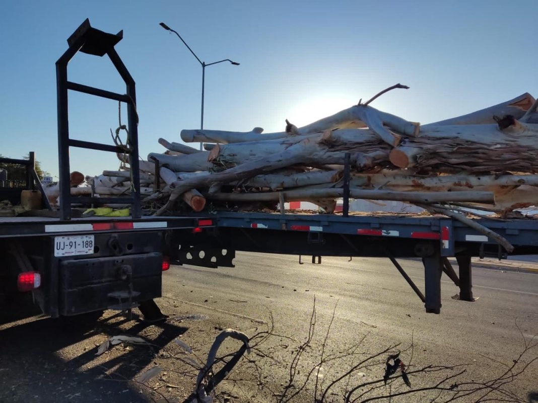 Ya en la plataforma tenían cargados alrededor de 4 a 5 árboles, totalmente los troncos ya limpios