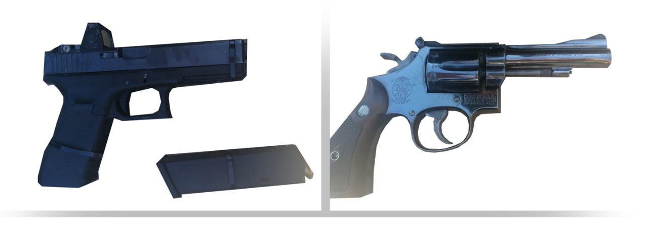Además de las personas también se aseguraron dos armas de fuego cortas y en el sitio se encontraron varios cascajos.