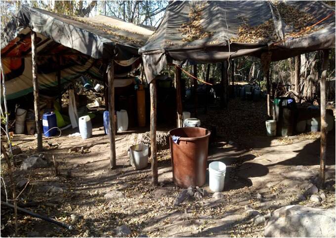 CULIACÁN, Sin.- El pasado 17 de enero personal del Ejército Mexicano al efectuar reconocimientos terrestres a inmediaciones del cerro de poblado El Capule, municipio de Mocorito localizó y aseguró un laboratorio clandestino para la elaboración de droga sintética, que contenía lo siguiente: