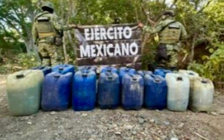 Personal militar localizó asentamientos para la elaboración de drogas sintéticas que contenían mezcladoras, reactores, tambos y bidones con sustancias químicas.