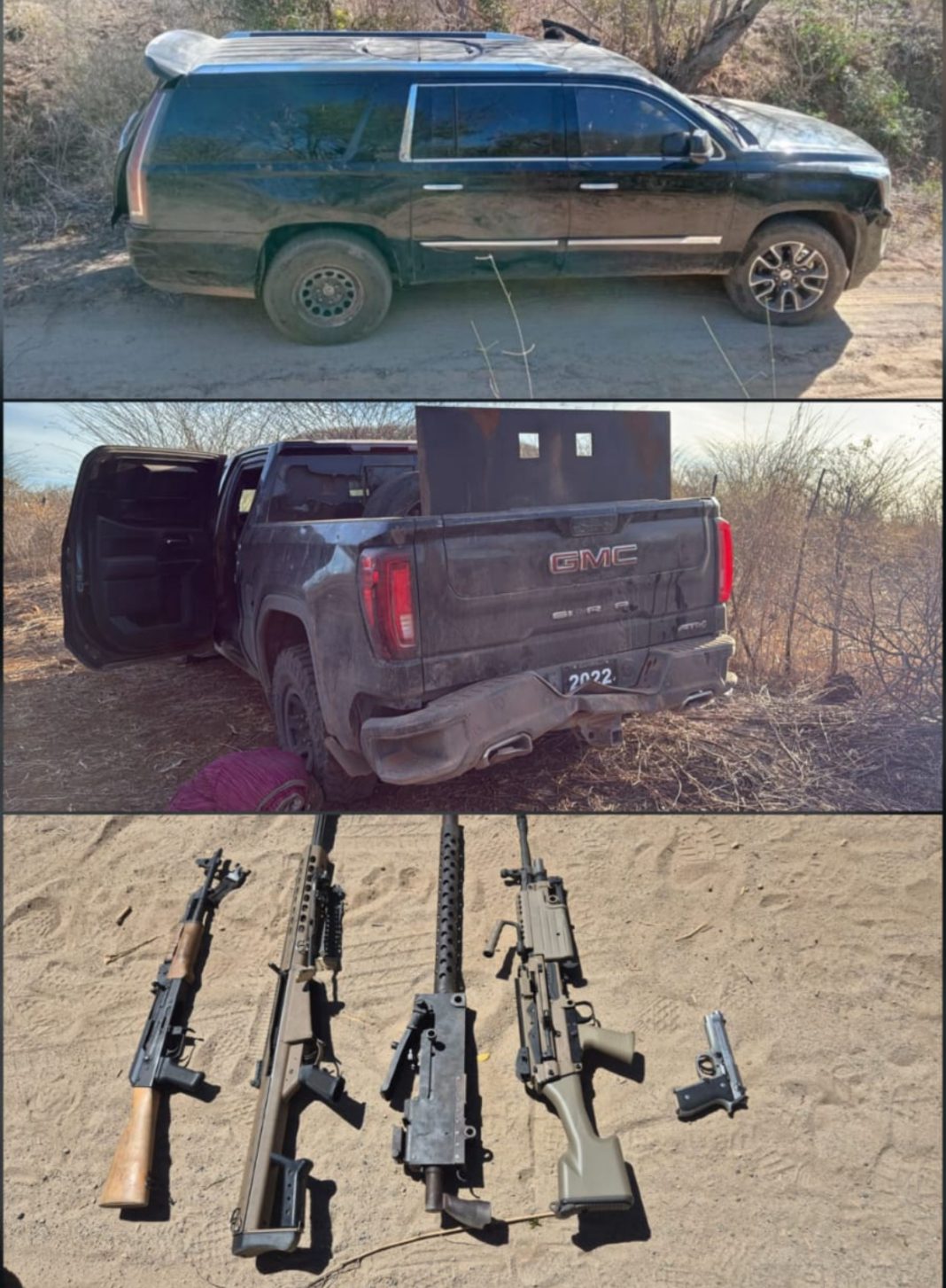 Aseguran autos blindados, un fusil calibre y dos ametralladoras tras ataque a militares