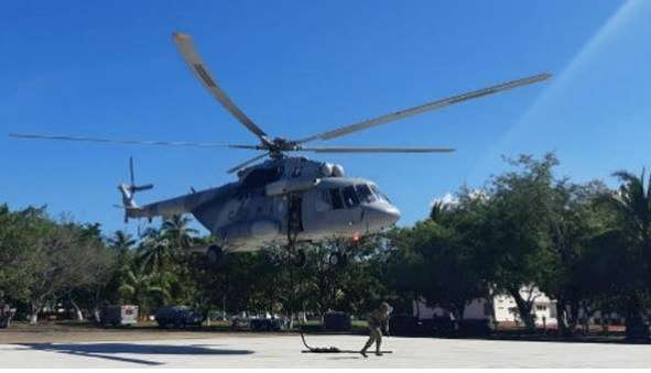 Según informes de la novena zona militar, a las 17:00 horas del pasado martes, se informó que helicópteros de la Marina viajaban detrás de la referida aeronave, que iba de oriente a poniente, a la altura de Batamote.