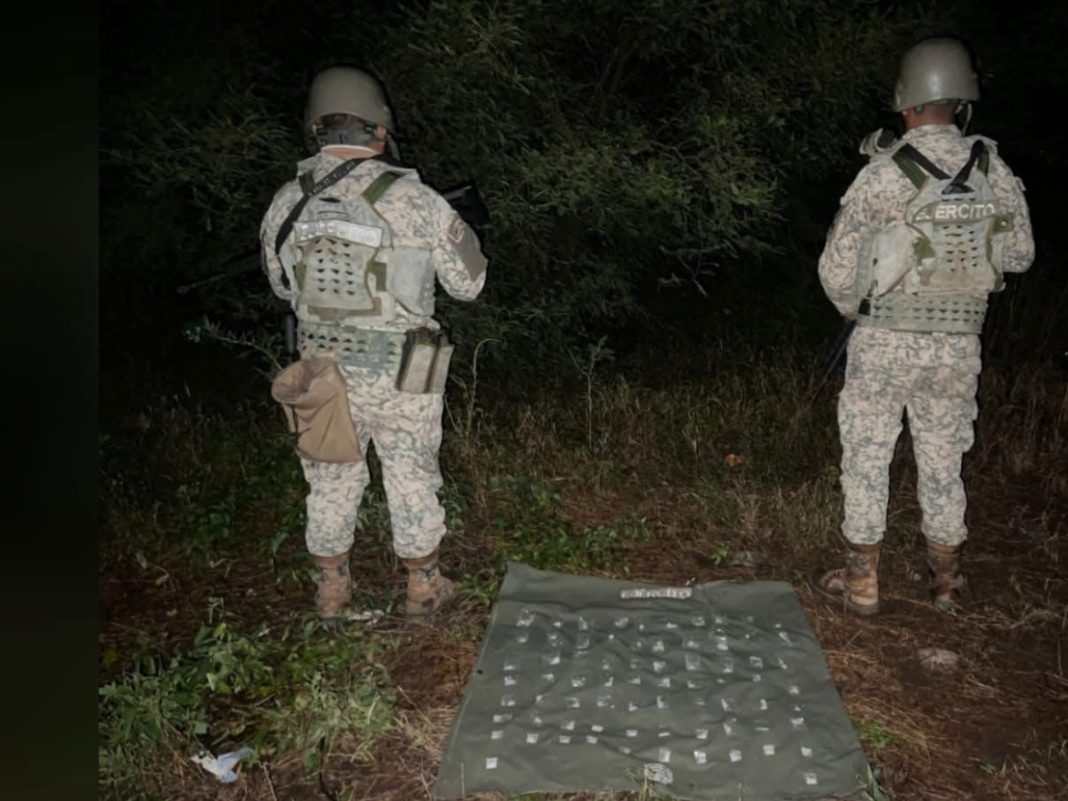 Fue a través de recorridos de reconocimiento terrestre en la colonia Ampliación El Barrio, al oriente de Culiacán, donde el personal militar localizó 72 dosis de sustancia blanca granulada con características de la droga conocida como cristal.