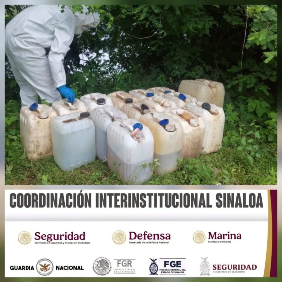 CULIACÁN, Sin.- Elementos del Ejército Mexicano, en coordinación con la Guardia Nacional, la Secretaría de Marina, la Secretaría de Seguridad y Protección Ciudadana, la Fiscalía General de la República, la Fiscalía General del Estado y la Secretaría de Seguridad Pública de Sinaloa, a través de la Policía Estatal Preventiva, aseguraron dos áreas de concentración de sustancias químicas en Culiacán y Cosalá.