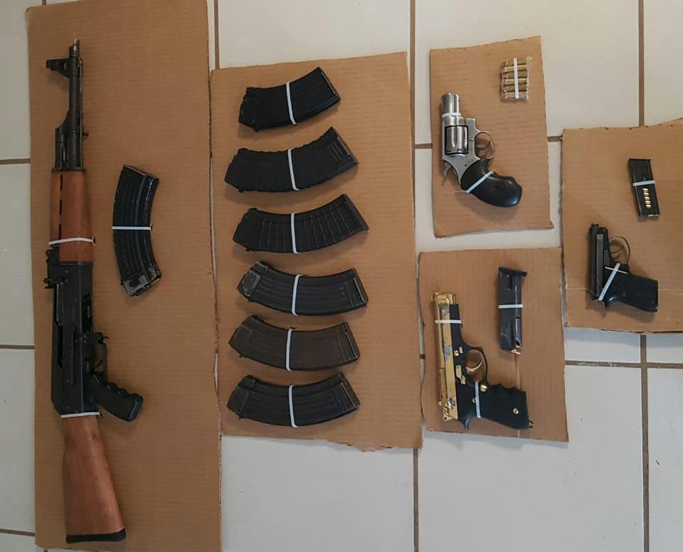 Al inspeccionar el interior de dicho costal, encontraron un arma de fuego larga, tres armas cortas, seis cargadores abastecidos, 87 cartuchos de cigarros electrónicos con una sustancia amarilla en su interior con olor característico de la droga conocida como marihuana y una bolsa de plástico con 455 gramos de la misma droga.