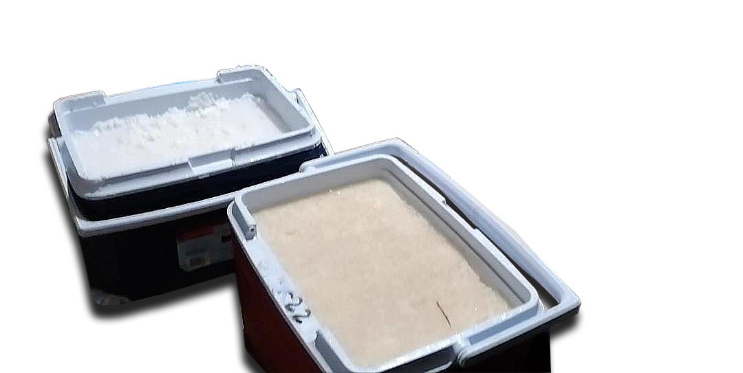 Al inspeccionar, se encontraron dos hieleras con sustancia blanca y granulada, además de un cartón con bolsas transparentes conteniendo el mismo producto que cuenta con las características de la droga conocida como cristal, por lo que, se procedió al aseguramiento del producto para ser puesto a disposición de las autoridades correspondientes.