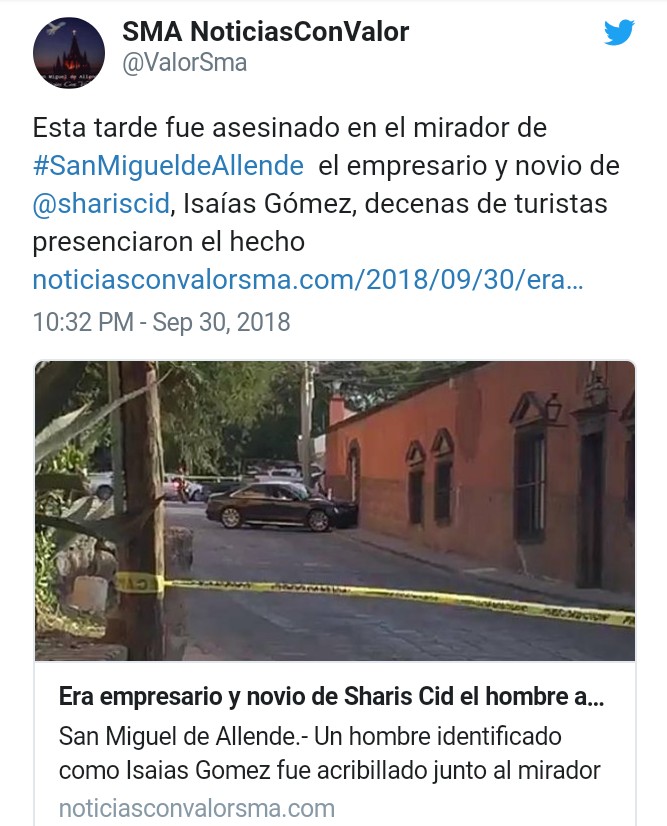 CIUDAD DE MÉXICO.- El asesinato de un empresario en San Miguel de Allende, Guanajuato conmocionó al mundo del espectáculo en México, al confirmarse que se trata del novio de la querida actriz de Televisa Sharis Cid.