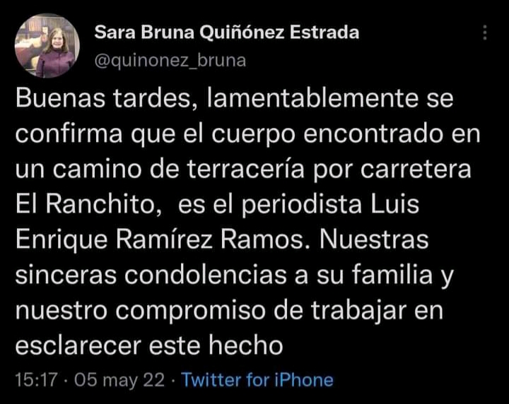De acuerdo a un medio local, Luis Enrique Ramírez había sido privado de la libertad horas antes de su deceso al salir de su domicilio en la colonia Los Pinos de esta ciudad.