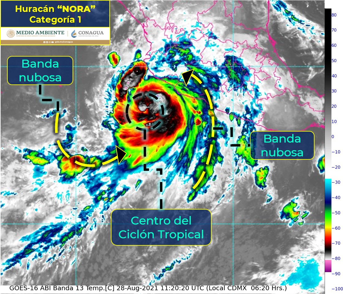 CIUDAD DE MÉXICO.- El centro del Huracán “Nora” categoría 1 en la escala Saffir-Simpson frente a las costas de Jalisco y Colima. Se prevé que su trayectoria sea cercana a la línea de costa durante el día de hoy sábado.