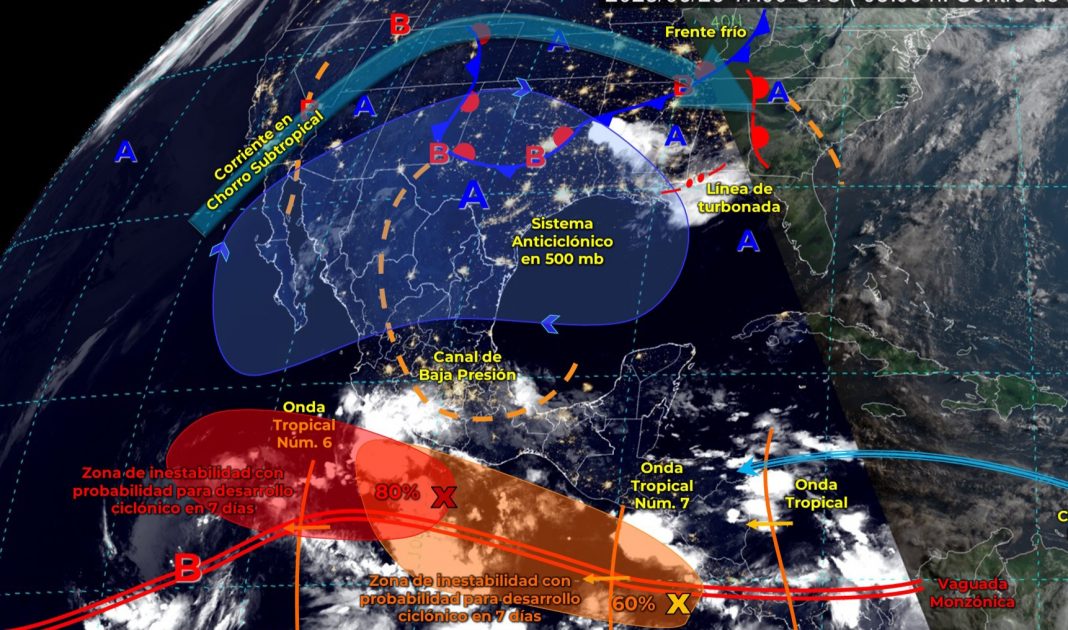 CIUDAD DE MÉXICO.- Los dos desarrollos ciclónicos en sur del Pacífico mexicano frente a Oaxaca y Guerrero aumentaron su potencial al 60 y 80 por ciento, informó el Servicio Meteorológico Nacional.