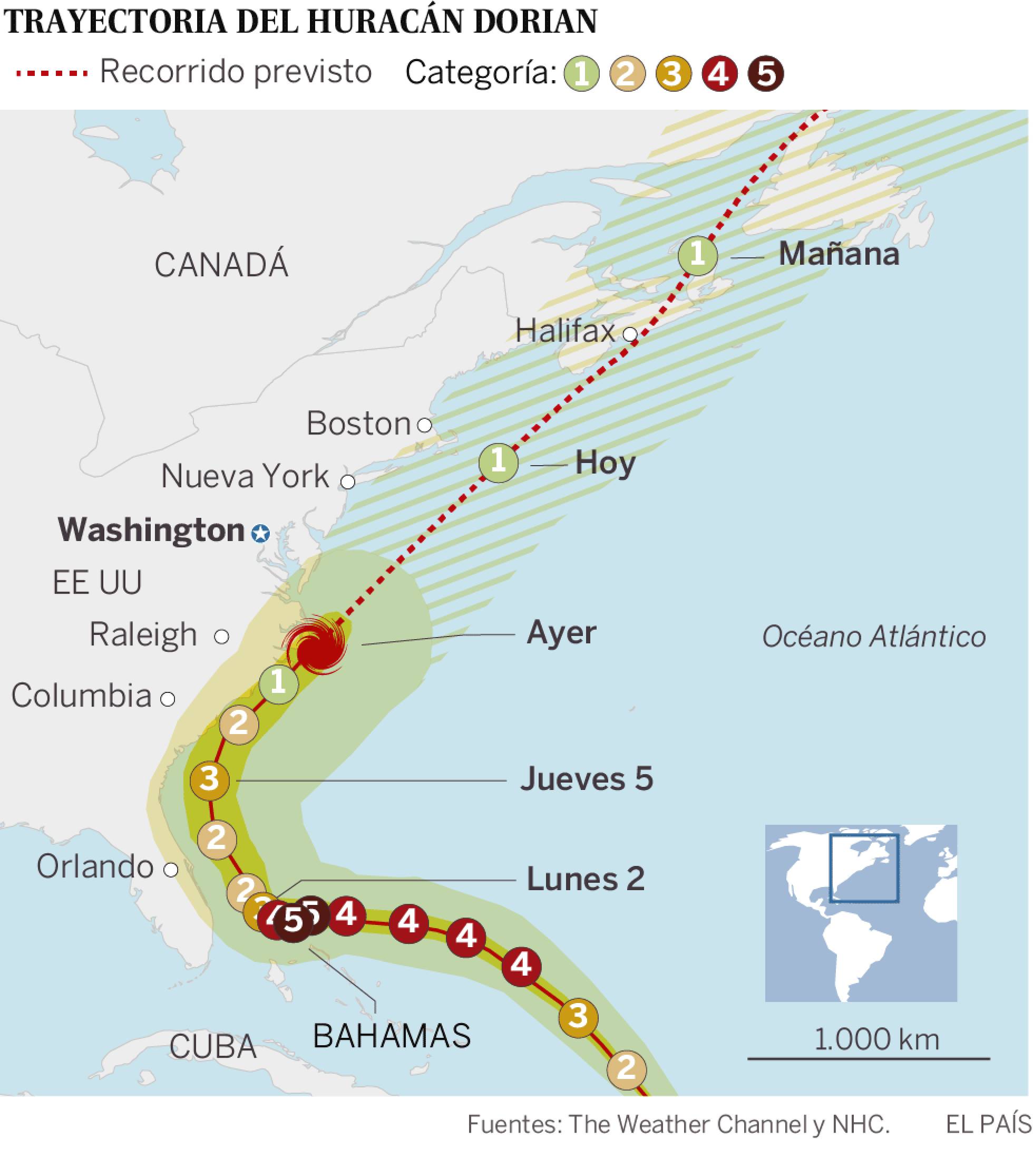 Según el Centro Nacional de Huracanes (NHC) de EE.UU., Dorian cruzará Nueva Escocia este sábado por la tarde.