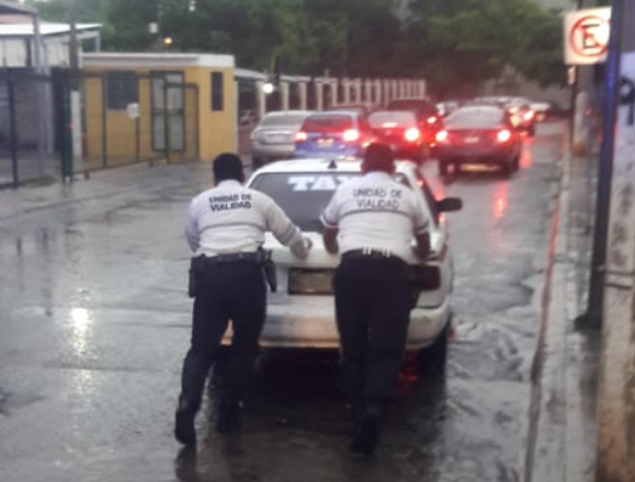 Más de 17 automóviles en diversos sectores de la ciudad han presentado fallas mecánicas y han requerido el arrastre, otros más han sido empujados bajo la lluvia por Policías de Vialidad, para evitar entorpecer el flujo vehicular e impedir congestionamiento.