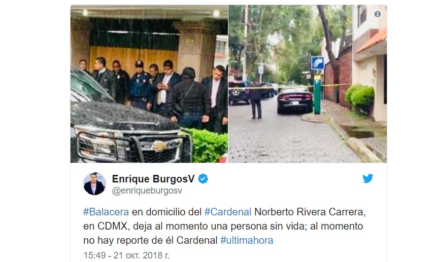 CIUDAD DE MÉXICO.- Desconocidos han tiroteado la residencia del cardenal mexicano Norberto Rivera Carrera, ubicada en la Ciudad de México.