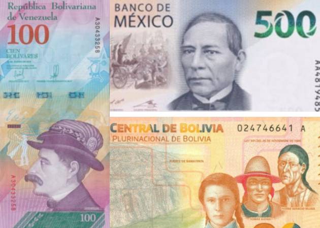Los billetes de América Latina que figuran entre los más destacados son el de 500 pesos, que tiene a Benito Juárez, el primer presidente indígena en México, en el anverso; el de 50 pesos de Argentina, que destaca la figura del cóndor –un animal autóctono de la zona andina de Sudamérica–; el de 100 bolívares de Venezuela, con el rostro de Ezequiel Zamora, político y militar de ese país; y el de 20 bolivianos de Bolivia, que resalta la imagen de Genoveva Ríos, Tomás Katari y Pedro Muiba, tres importantes personajes en distintas batallas en la historia de esa nación.