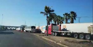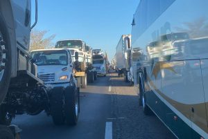 Desde las 17:00 horas el bloqueo hizo que se aglutinaran decenas de unidades en largas filas que finalmente dejó sin paso a vehículos de carga comercial en demanda de 7 mil pesos por tonelada de grano.