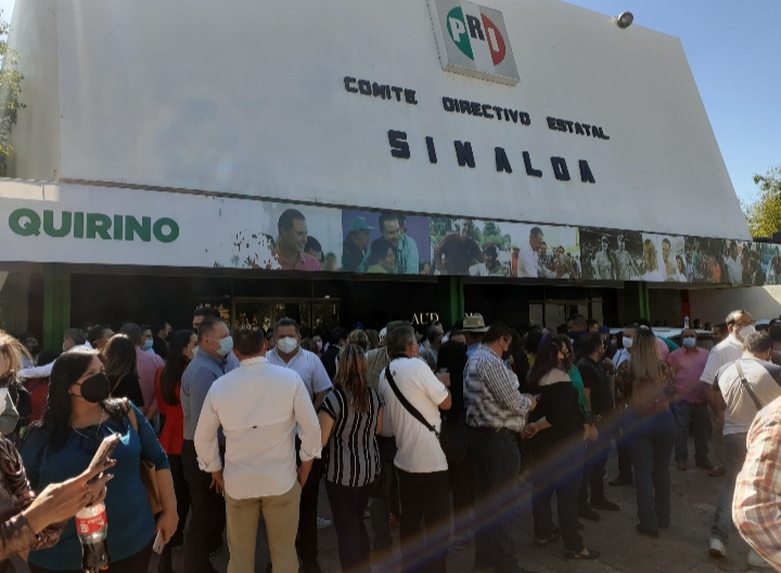 En la sede del tricolor se estiman más de 2 mil personas aglomeradas donde figuran exfuncionarios estatales, empresarios, militantes y una decena de periodistas para la cobertura de un suceso que marca el preámbulo de la elección del 6 de junio próximo en la coalición Va por México.