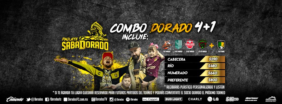 Ante tal situación la directiva sinaloense a partir de hoy lanzó una atractiva promoción para los fieles aficionados con el Combo Dorado 4+1 que incluirá los cuatro juegos que disputarán los áureos durante el mes de marzo ante Alebrijes de Oaxaca, Atlético Zacatepec, Mineros de Zacatecas, el duelo reprogramado ante Bravos de Juárez y como regalo incluirá totalmente gratis el encuentro ante Venados de Yucatán del día 5 de abril.