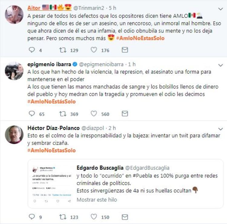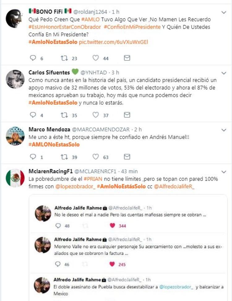 Asimismo, al poco tiempo los usuarios en Twitter respondieron con el hashtag #AmloNoEstásSolo en donde expresaron su apoyo hacia el Presidente y criticaron a la oposición que presuntamente pretende hacer una campaña de odio contra Andrés Manuel López Obrador.