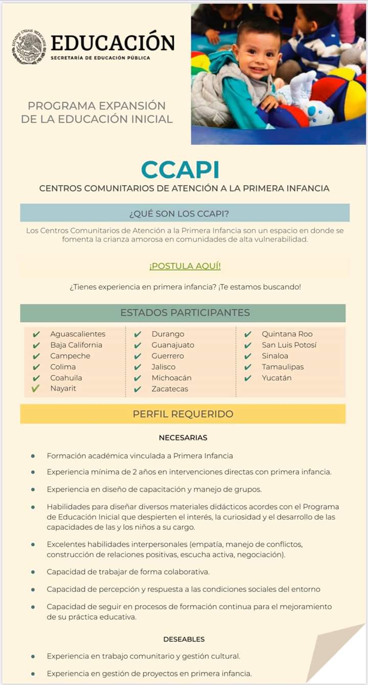 CULIACÁN, Sin.- Para el programa de expansión del educación inicial la Secretaría de Educación Pública te invita a postularte.