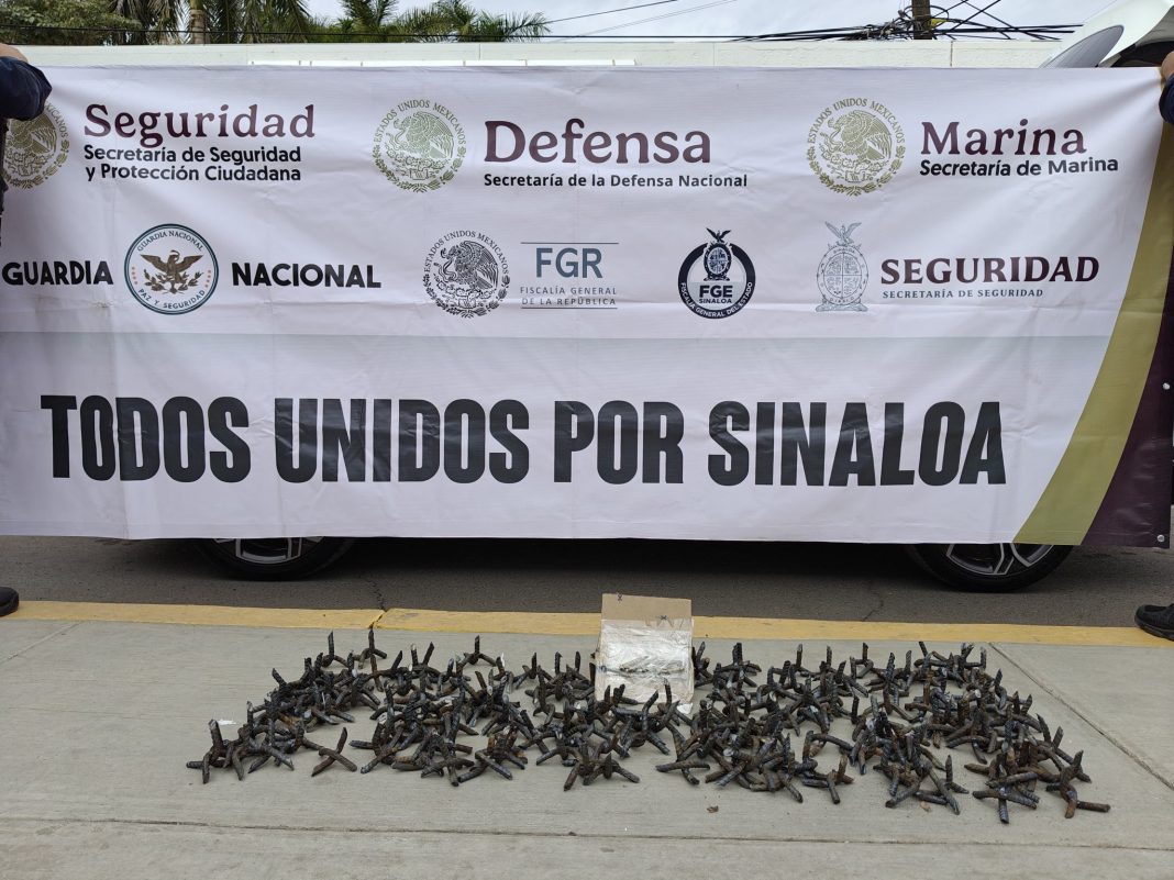 CULIACÁN, Sin.- Personal de la Defensa, Marina y la Fiscalía del Estado aseguraron junto a la Secretaría de Seguridad Pública de Sinaloa un vehículo, cartuchos y puntas de acero en la capital del estado.