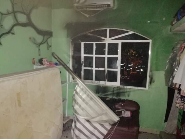 Se presume qué pirotecnia fue la causante de los hechos, misma que provocó el incendio tras caer este cuete en un colchón, el cual ardió en llamas.